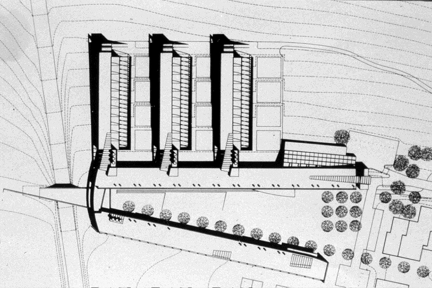 Hochschulbau mit ca. 22.000 qm Geschossfläche, Laboratorien, Hörsälen, Verwaltung für Lehre und Forschung. Städtebaulicher Abschluss des Hochschulgeländes zur freien Natur