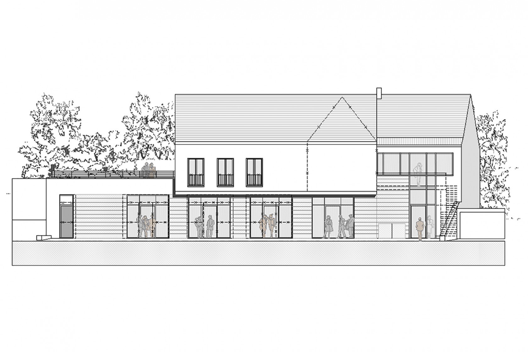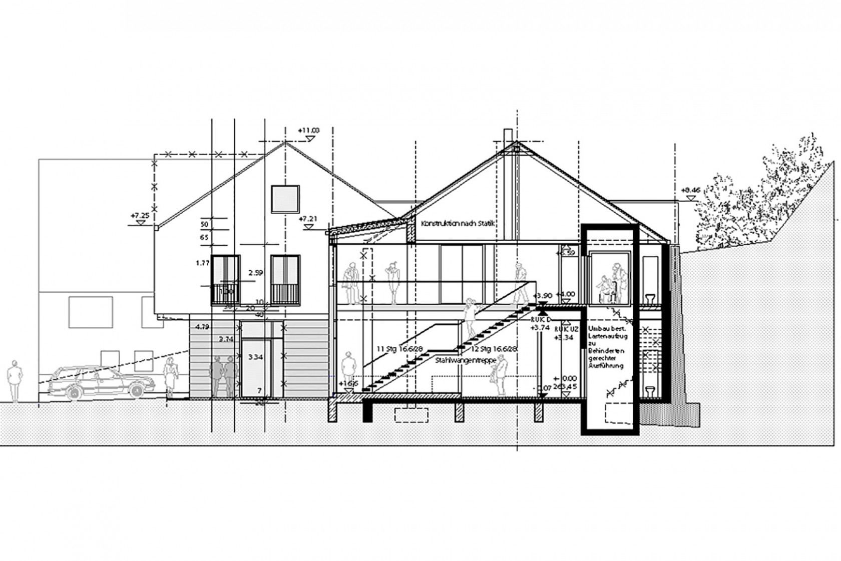 Umbau eines früheren Supermarktes zu einer Markthalle und Neubau eines darüber liegenden Gemeindesaals